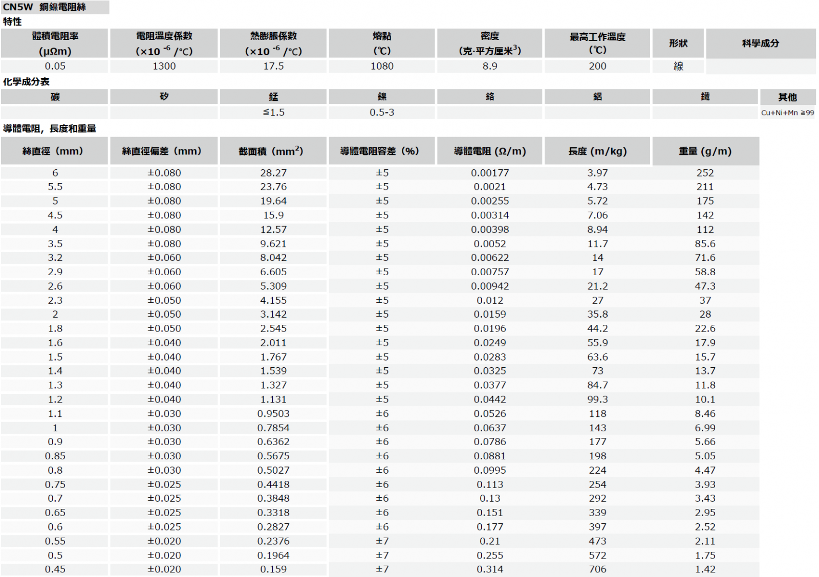 電銅材料等於或熱,和抗氧化性。可用於高達200℃。 非磁性的可操作性比用電銅材質更佳。 使用加載加熱器,地板采暖設備,如電熔絲。